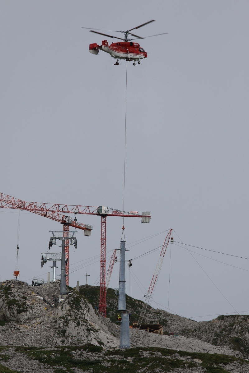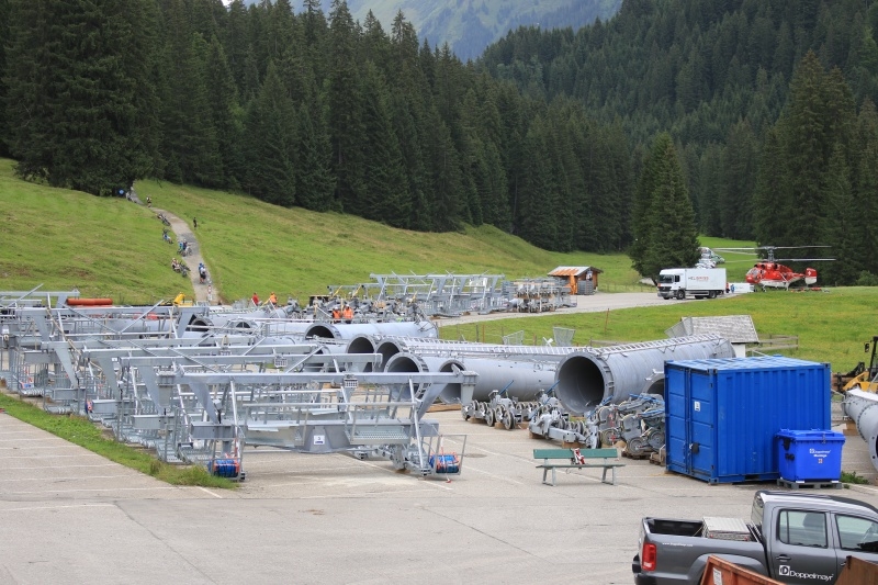 Am 31.07. und am frühen Morgen des 1. Augusts fand der lang geplante Stützenflug für die neue 10er-Kabinenbahn der Firma Doppelmayr statt. Die teilweise über 4 Tonnen schweren Stahlteile wurden mit dem größten privaten Transporthubschrauber Mitteleuropas vom Typ "Kamov" mit Doppelrotorsystem geflogen.