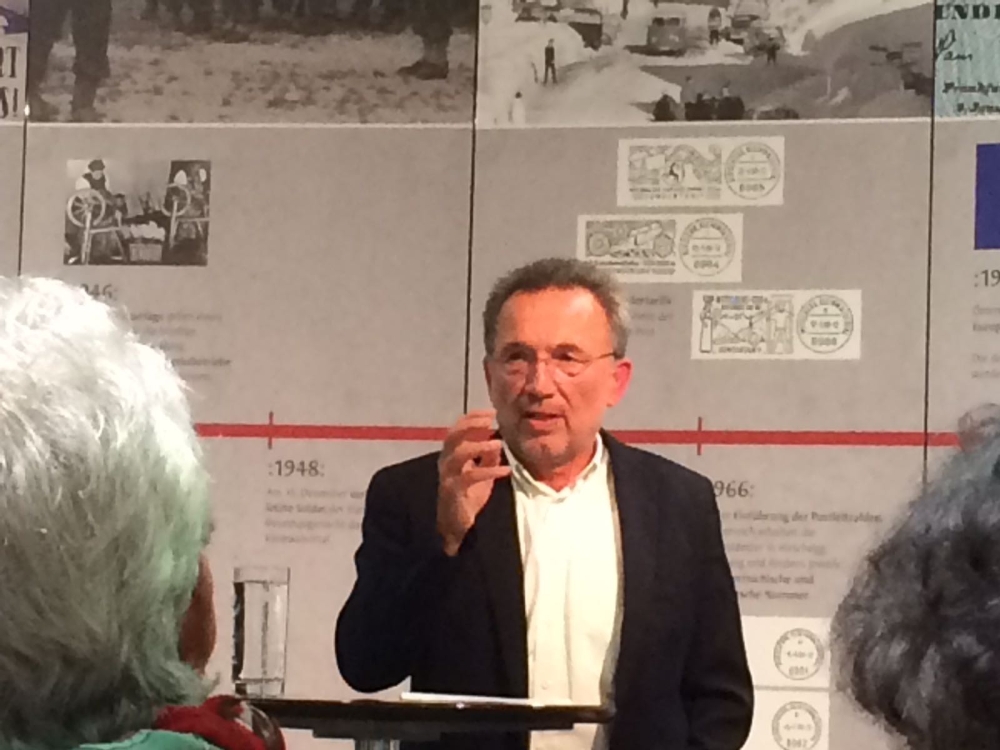 Einen überaus interessanten und lebendig präsentierten Vortrag des Vorarlberger Historikers Meinrad Pichler bekamen die 33 Zuhörer am 25.10. in der STERN-Passage geboten. Dabei überraschte Meinrad Pichler bei seinen Erläuterungen, warum und wie der Zollanschlussvertrag 1891 zustande kam auch mit viel Detailwissen über das Kleinwalsertal.