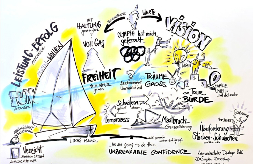 Bei strahlendem Sonnenschein, inmitten der Bergkulisse entstanden viele inspierende Begegnungen. Zahlreiche Gäste nutzten die Gelegenheit zum Austausch. Die drei Vorträge hätten unterschiedlicher kaum sein können. Jede Referentin und jeder Referent brachte eine eigene Perspektive ein und machte den Tag auf ganz besondere Weise spannend und vielfältig. Die Dialogrunde war aufgrund der Teilnehmenden anregend: Das Zusammenspiel von Schüler:innen und Referentinnen eröffneten deren Blickwinkel.