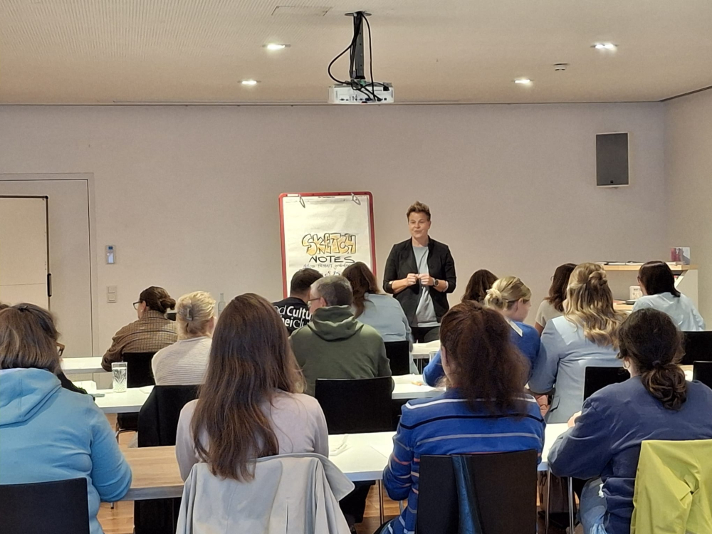 Der ausgebuchte Kreativworkshop "Sketchnotes" von Anna Egger war voller Inspiration! Bilder bleiben im Kopf und sind leichter erstellt als viele denken – das war das Motto. Die Teilnehmer:innen haben nicht nur gelernt, wie man Ideen visualisiert, Gedanken strukturiert und Notizen kreativ gestaltet, sondern auch, wie visuelle Elemente Meetings, Vorträge oder sogar den eigenen Alltag bereichern können. Jede:r konnte ausprobieren, wie viel Spaß es macht, Informationen ins Bild zu bringen – und wie leicht dadurch komplexe Inhalte verständlich werden.